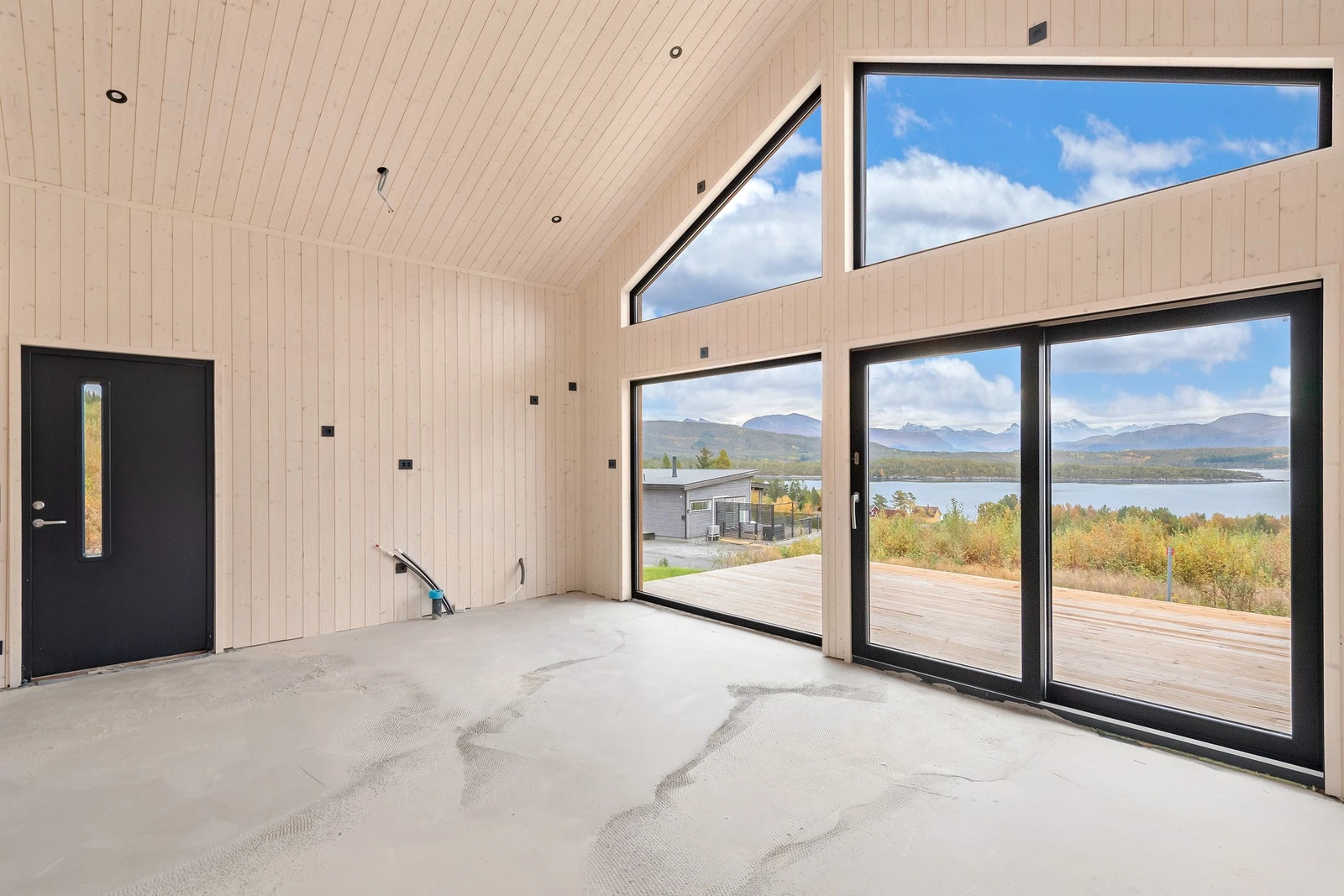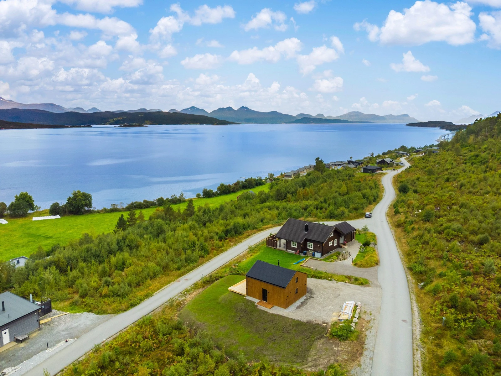Hytten er oppført i 2024, ligger høyt og fint i feltet med nydelig utsikt mot sør. Alt på en flate, med store vinduer og skyvedør i fasaden. Utgang til en romslig markterasse. Hytten inneholder stue/kjøkkenløsning, 2 soverom, bad og gang. Romslig tomt på ca 800 m2 med god mulighet for å supplere med uthus/anneks. Kort vei til dagligvarebutikk på Skåla. Til Molde ca. 15 min. med bil.